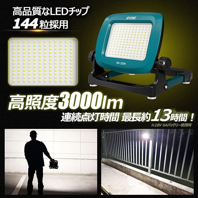 GOODGOODS led 電池式 投光器 3000lm 25W バッテリー着脱式 ポータブル投光器 夜釣り 作業灯 防水 強力マグネット 昼光色 超高輝 屋外照明 DIY 工事 夜釣り ワークライト 携帯型 災害グッズ 停電対策 アウトドア 集魚灯 防災 地震 台風 バッテリーなし SK-25W | つむぎ屋