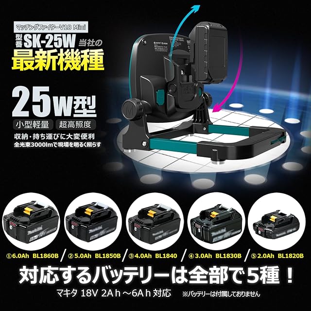 ⚡【手軽にバッテリー交換】対応するバッテリー:マキタ 18V 2Ah~6Ah(全部5種類)対応可能。使用している電動工具から電池パックを付け替えることで、直ぐに点灯可能(本製品はバッテリーは付属されません)