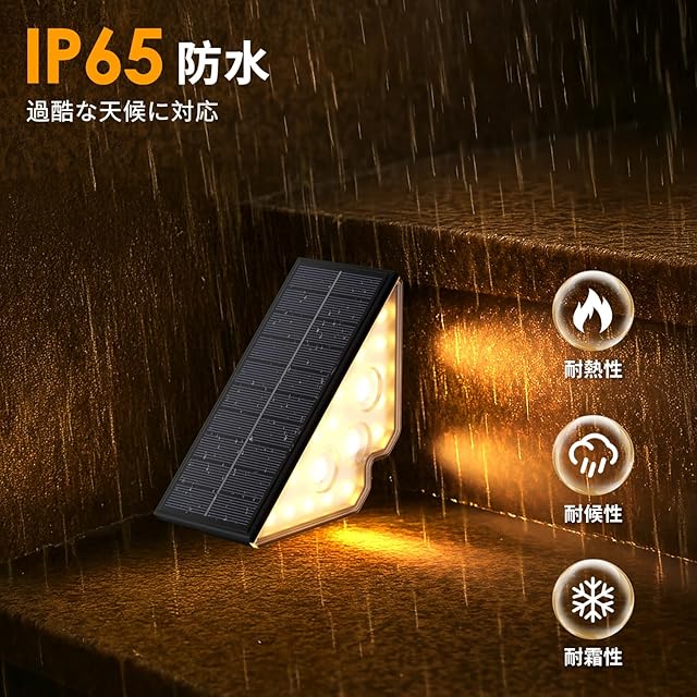 商品名:ソーラーライト階段屋外 ステップライト IP65防水 ソーラーデッキ 自動充電 自動点灯 取付簡単 夜間作業 通路 歩道 玄関用 電球色 6個セット