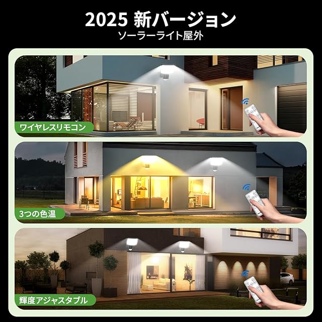 【3つの照明モードとリモコン】人感センサー付きソーラーライトは、リモコンまたはソーラーライト背面のボタンで3つの照明モードを簡単に切り替えることができます。屋外用ソーラーライトは、強い光センサーモード、薄暗い光ロングブライトモード、シマーセンサーモードから選択し、毎日の照明ニーズに応えます。これらのLEDソーラーライトは、より明るく安全な環境を作り出し、バルコニー、廊下、パティオ、庭、階段、外壁、ガレージ、歩道などの照明エリアを増やします。