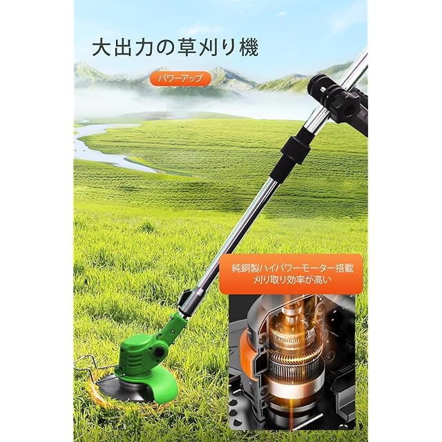 【ワイヤレスの自由、効率的な充電式草刈機のパワー】充電式草刈機は、束縛のない刈り込み体験を提供します!コンセントに縛られることをおさらばし、21Vバッテリー+銅製高効率モーターが、より大きなパワーと高効率の刈り込み体験をもたらします。充電式草刈機は、1回の充電で、駐車場10台分の草刈り作業を簡単に完了できます。