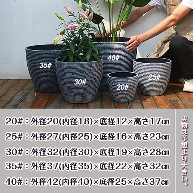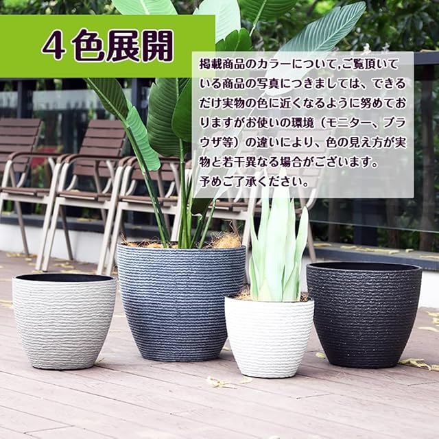軽量で持ち運びが簡単:プラスチック素材を使用しているため、花盆は軽量であり、移動や配置の変更が容易です。重たい石製の花盆と比較して、便利な使い勝手があります。