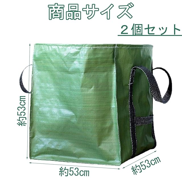 商品仕様:ガーデンバッグ2個セット、サイズ:幅52×奥行52×高さ52.5cm、カラー:アイスグリーン、材質:ppポリプロピレン、容量:約140L