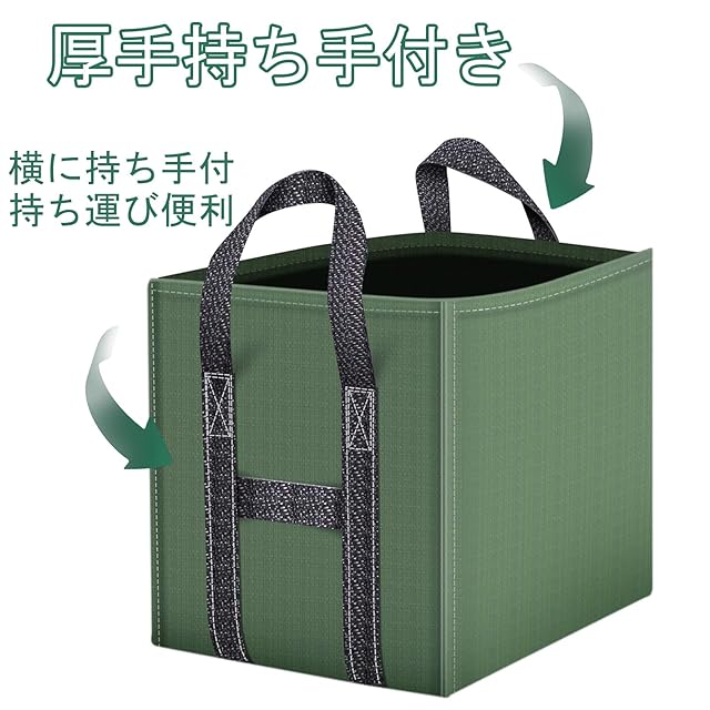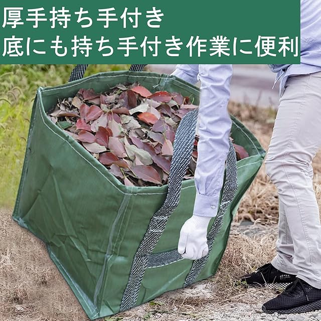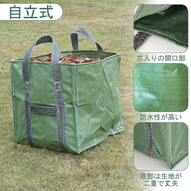 自立性・汎用性:厚手の生地は中に何も入っていなくても自立して、崩れにくいです。ガーデンバッグは草刈りをして草を入れるのにとても便利で、剪定した木の枝、庭の落ち葉集め、抜いた雑草、その他の庭廃棄物の収集に使用して、玉ねぎ、ジャガイモ他野菜の収穫に使ってます。