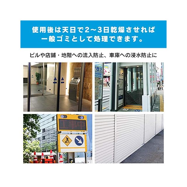 仕様 : 袋についている紐を調整することで袋サイズの調整が可能、水が引いた場合は炎天下で2~3日で収縮