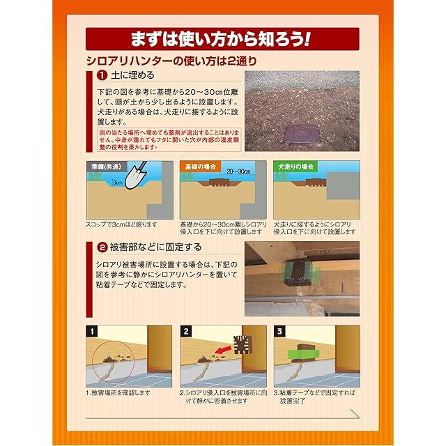 使い方簡単:被害場所やシロアリの生息場所、出没しやすい所に設置するだけなので簡単に使用できます。