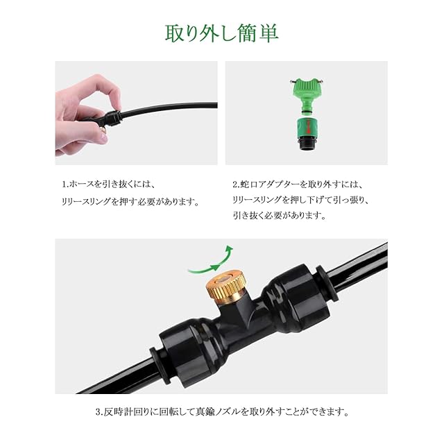 【高品質な材質】精密散水システムは、耐紫外線のABS材料で作られたプロフェッショナル品質のドリップホースを使 用しています。噴霧ノズルは環境に優しいブラス製の丈夫な材料を採用して、錆びにくく、良好な耐摩耗性があり、長い時間使用しても続けます。