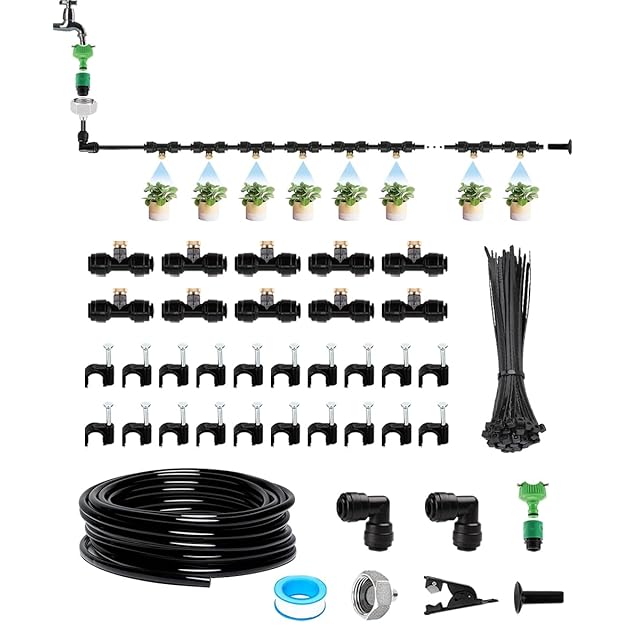 【広い適用】灌漑システムセットは霧化、芝生灌漑、テラス、花園、野菜灌漑、屋上冷却、灌漑、農業、野菜、温室、花壇、プール霧冷却灌漑などに適しています。灌漑の手動給水と比較すると、75%の節水が可能です。
