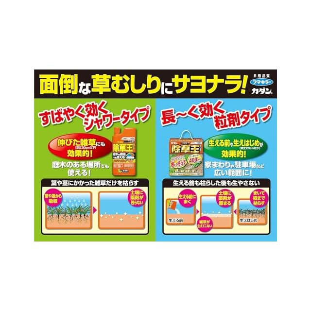 20cm伸びた雑草にも効き、約6か月持続します。