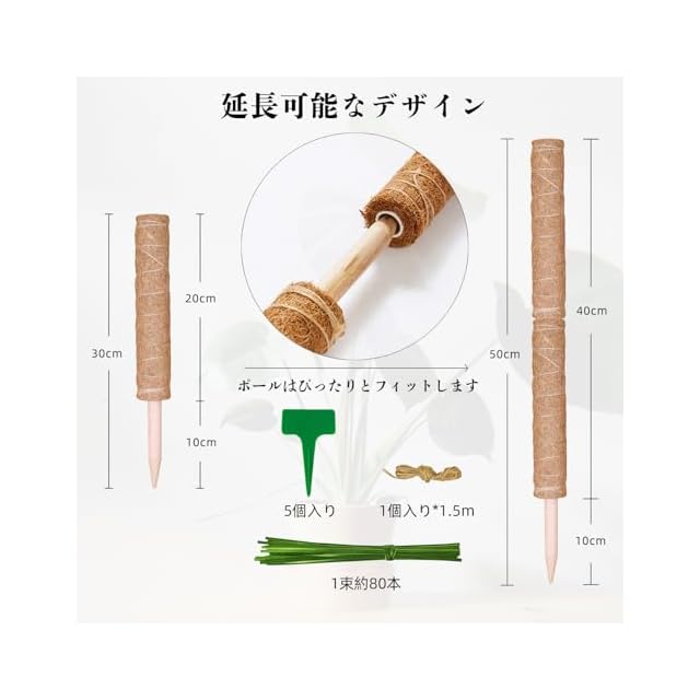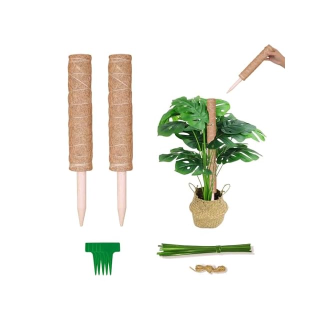 【園芸支柱セット】: 30cm園芸支柱2つ、1.5 mの麻縄1つ、T字植物ラベル5つ、ガーデンツイストタイ80本が含まれています。 モンステラ、フィロデンドロン、ポトス、モンステラ、ポトス、ランなど、さまざまな屋内つる性植物の理想的なサポート。