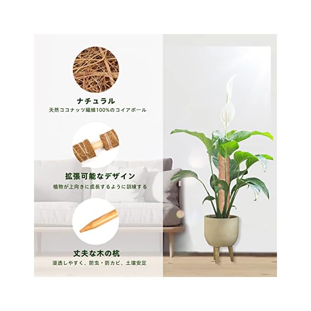 【高品質素材】: つる植物用のコケ柱も、ユーカリの代わりに丈夫で滑らかなブナでできており、虫やカビに強く、割れにくいです。