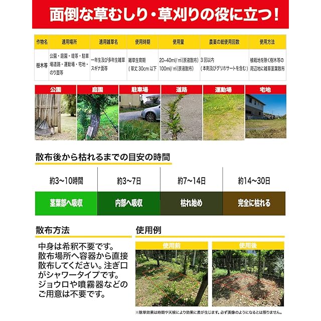 【✅こんな場所にオススメ!】公園・道路・駐車場・空地・庭園・宅地など ※非農耕地用ですので畑などの農作物を育てる土地への使用はおやめください。