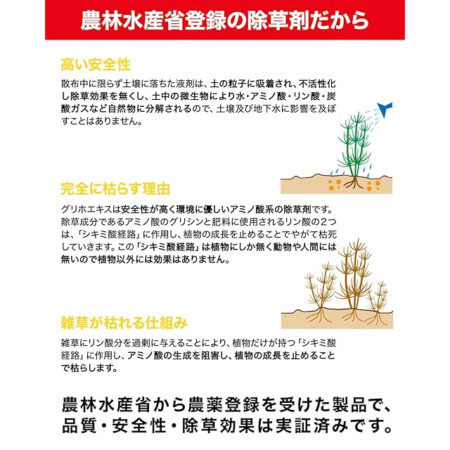 【✅非農耕地用、強力タイプの除草剤】雑草にかけるだけで、葉から浸透し、根まで枯らす強力な除草剤です。雑草対策はこれにお任せ!