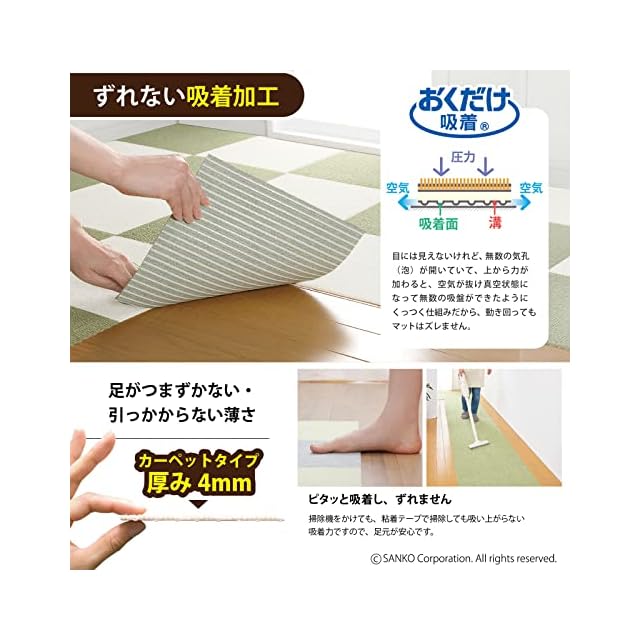 【おくだけ吸着】 床に置くだけでズレない特殊加工、簡単に外せて、何度でも敷き直し可能