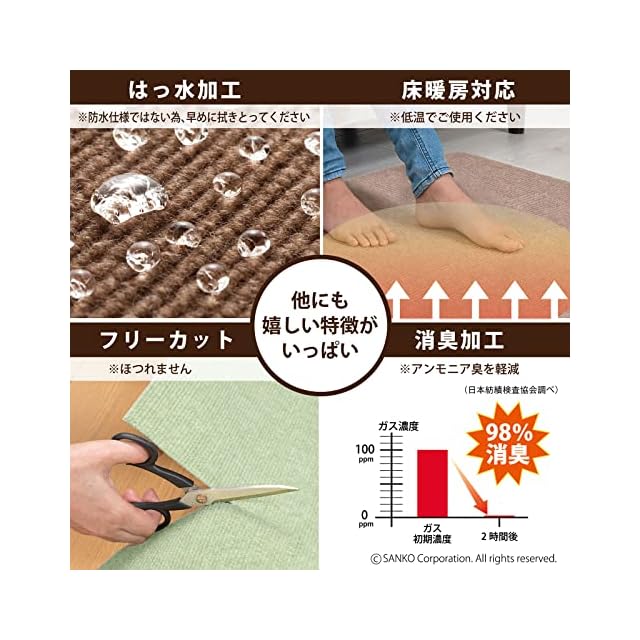 【日本製】 洗濯機OK(繰り返し使えます)、床暖房対応(推奨:低温)、ハサミでカット可能
