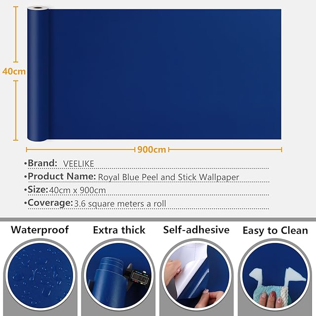 VEELIKE 壁紙 青 40X900cm 厚手 つや消し 壁紙シール ブルー リメイクシート カッティングシート 貼る壁紙 リフォームシート 襖紙 壁クロス リフォームシート ウォールステッカー はがせる 北欧 おしゃれ 無地 のり付き 補修 防水 耐熱 耐摩擦 賃貸 トイレ 浴室 キッチン テーブル キャビネット 下駄箱 リビング 部屋 ふすま インテリア 装飾 DIY | つむぎ屋