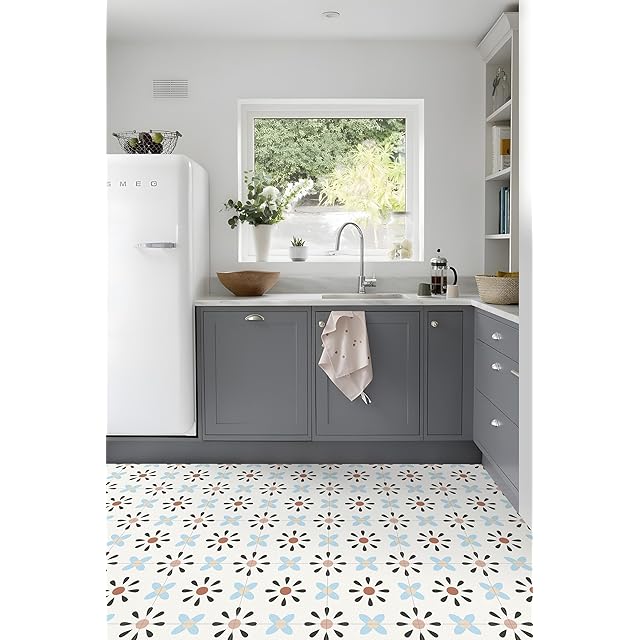 MORCART フロアタイル 置くだけ フロアシート 貼るだけ 接着剤不要 床 シート DIY トイレ 浴室 玄関 キッチン 床 リメイクシート フローリングシート 防水 滑り防止 剥がせる 賃貸OK (20*20cm*10枚, おはようの花) | つむぎ屋