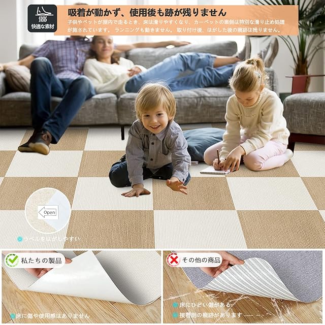 ✔【防音、滑り止め、用途が広い】床 タイルカーペット吸着マット耐久性があり、床の凹凸や引っかき傷を防ぎ、階下の騒音を防ぎます。断熱性に優れ、一年中いつでも使用できます。あなたは私たちの色であなたが望む形をDIYすることができます。ヒントに従って、目的の形状を結合することもできます。