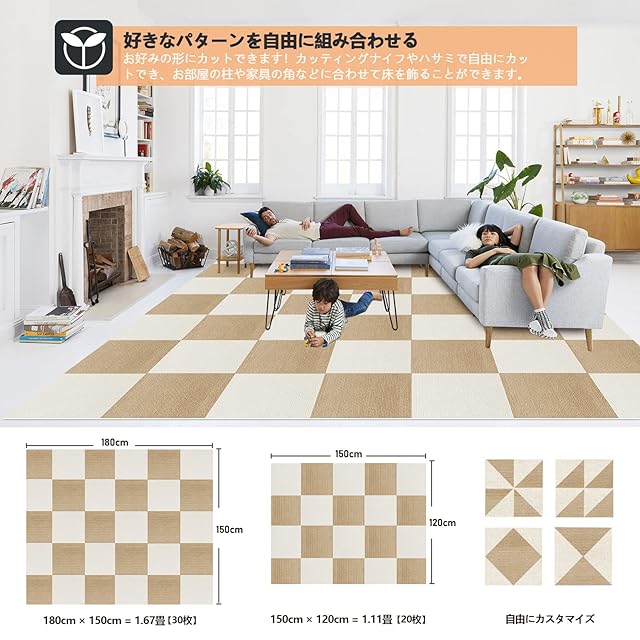 ✔【フリーカットフロアマット】タイルマットはカットしやすいので、お部屋の大きさや形に合わせて正確に配置できます。 DIYアクセサリーとして使用でき、リビングルーム/ベッドルーム/キッチン/椅子の下に任意の形で配置できます。