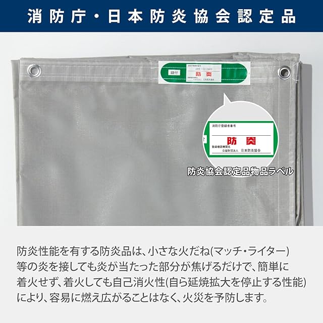 【日本防炎協会適合品/防火対策に】防炎性能を有する防炎品は、火災の初期段階では火災の発生を防止+延焼拡大を抑制または阻止する効果があり、また防炎効果により火災の成長を抑制することで、初期消火や避難などの火災対応を行う貴重な時間的余裕をもたらします。