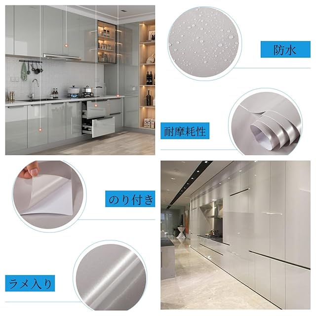 ラメ入り、かつ防水性に優れたので、キッチンなどのリフォームにぴったりです。食器棚や古びた家具、食卓などに貼っておくのもおすすめです。