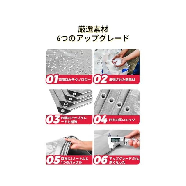 完全防水で雨・雪にも強い 高密度ポリエチレン製で水を完全シャットアウト。防雪・防災用としても最適で、突然の悪天候でも荷物や屋根をしっかり保護。