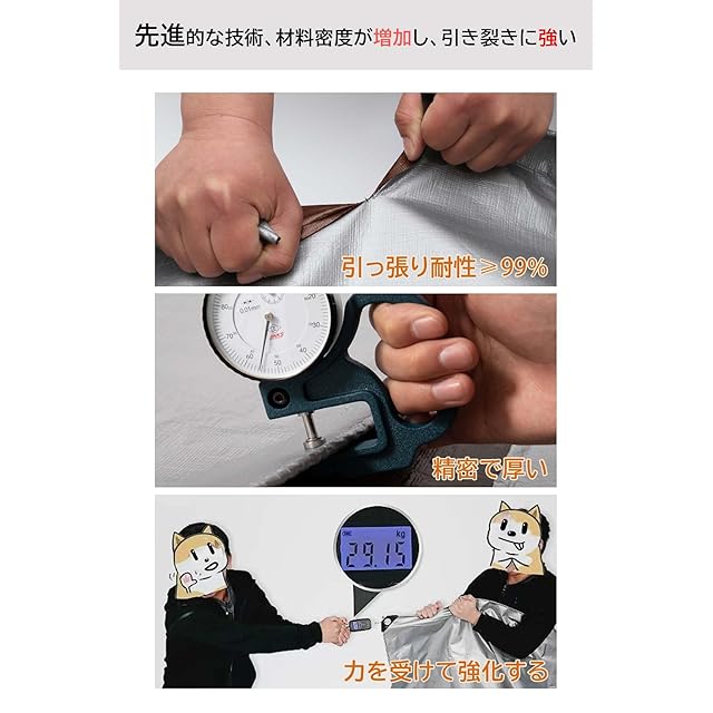 【優れた耐候性】防水シート、UVカット加工が施されており。銀色の反射効果が強く、日焼け止め効果が優れています。日光、雨、ホコリ、紫外線、雪、霜など、様々な過酷な環境下でも荷物をしっかりガードしてくれるので。四季を通じて広く適用される