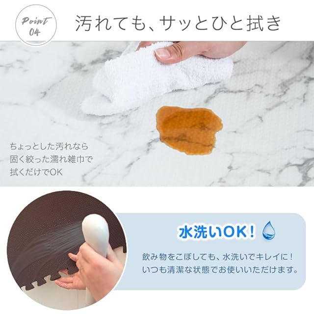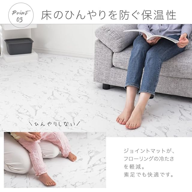 【備考】・マット毎に若干の色の違い、見る角度による色の違い等がありますが、これはPEマットの加工特性であり、 使用上の品質には問題ございません。 ・生産上マットをカットする際に生じた粉末が付着している場合がございます。 一度綺麗に水拭きしてからご使用ください。色落ちではありませんので、ご安心ください。 ・重量物を載せますと、マットが凹み変形する恐れがあります。 ・床暖房の種類等によって、商品に多少の反りが生じる場合がございます。予めご了承ください。 ・ロットによって色味が異なる場合がございます。 ・商品の仕様上、ジョイント部分(サイドパーツ含む)の柄は合わない場合がございます。 ・床材(塩化ビニル・フローリング等)によって、色移りや変色が起こる場合がございます。床とマットの間に敷物や防護シートを敷いていただくことを推奨しております。 ※類似品が出回っております。「じょいふるじょいふる」は累計80万セットを突破。ホルムアルデヒドの検査や耐熱検査をし、品質にこだわった商品です。品質や販売実績は真似できません。