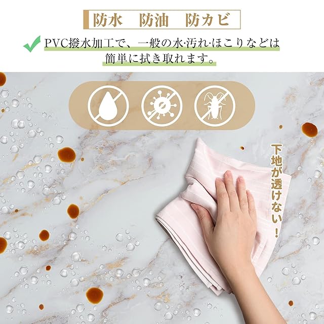 【防水防油&色褪せにくい】表面はpvc撥水加工を施されるので、風呂や浴室などの水回りでも使えます。生活防水防汚用壁紙に大活躍!一般の汚れ、ほこり、油汚れなどは簡単に拭き取れます。防水防油機能により、色褪せにくく長持ちになります。