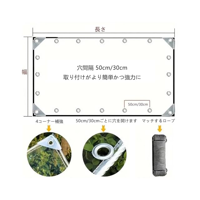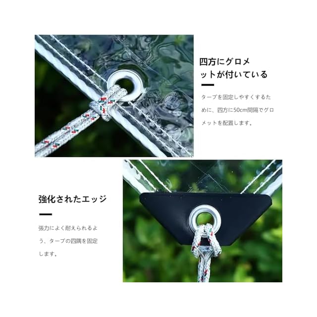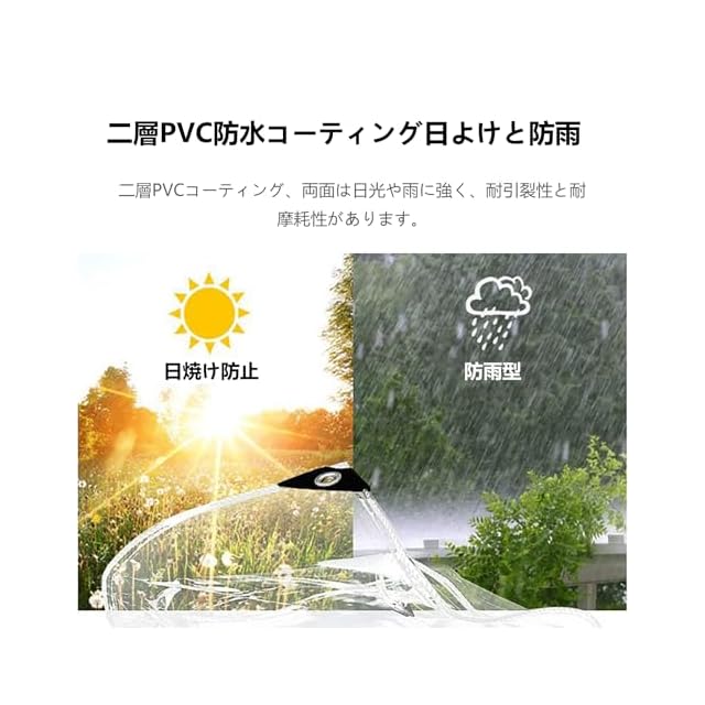 防水シート 透明 透明ビニールシート 透明 防水シート 透湿防水シート園芸用 ガーデニング 庭 植物保護カバー テラス バルコニー 屋外 店舗 飛沫防止 花粉症対策防水シート 保護ロープ付き-既存サイズ-厚さ:0.55mm-0.5x1M | つむぎ屋