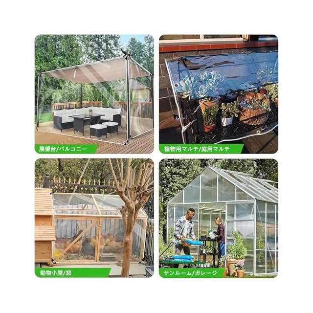 【多機能防水 透明シート】耐候性 シート 透明は緑の植物を覆うことができ、透明な防水シートは日光を遮らず、植物の成長のための光合成を提供することができます。ビニール 透明シートできるペットケージ、バルコニー、温室、プール、キャンプ場を覆い、嵐を防ぎます。 耐候性 シートまた、ドア、窓、バルコニーに設置して,または衣服のダストカバーとして使用できます。