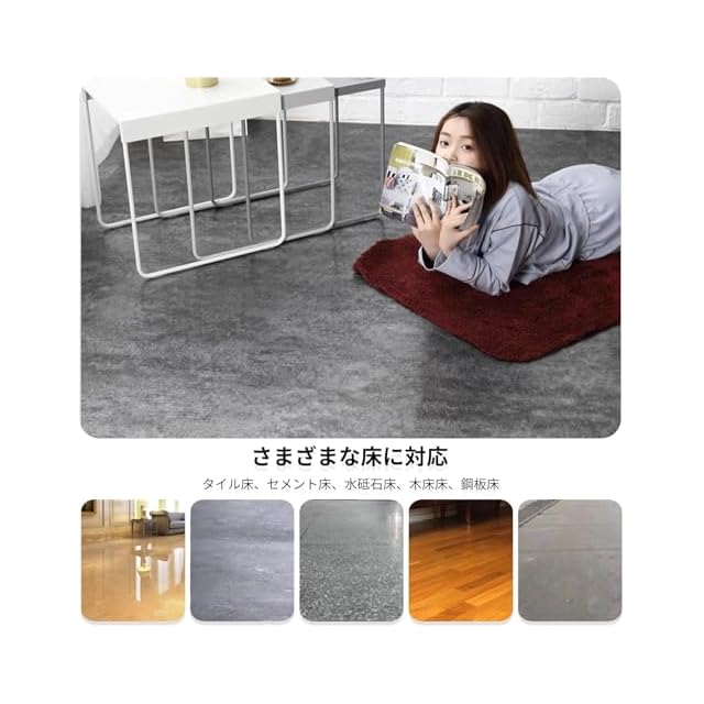 【粘着タイプ フロリングシート】床タイルの表面は防水加工されており、水が付いても浸透しない。バックゴムは帯状の設計で、粘着力が強く、裏面のゴム材料が均一で、施工がより簡単である。重い家具を置いてもタイルがずれない。背景ゴムの保護フィルムは、環境に配慮した透明な接着材で作られ、より軽量になっています。