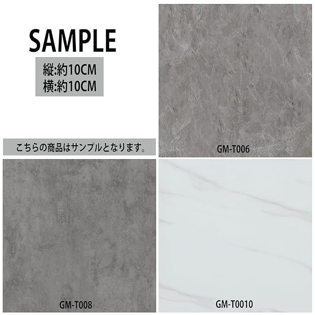 【こちらはサンプル商品となります!大理石調のGM-006、GM-008、GM-0010の3色のサンプルが含まれています。】2mm/枚の厚手の塩ビ素材で作った床材です。2重塗装されていますので優れた耐久性があります。耐久性も向上させ、床材の寿命も延ばします。それに、厚みの増加によって踏み時の安定感が増す。他社の1.5/1.8mm厚手の製品と比べて、コストパフォーマンスが高い。