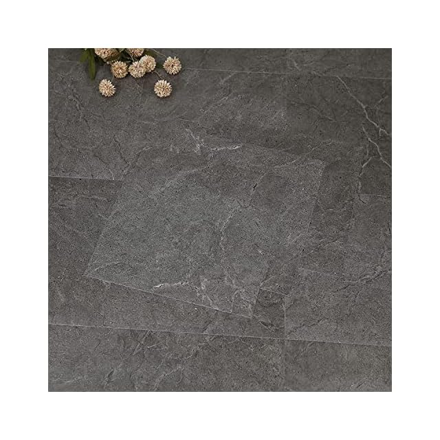 フロアタイル 大理石 置くだけ 配込み 床 リメイク シート トイレ はがせる 模様替え 浴室 玄関 ベランダ 防水 フローリングシート diy バス 床材 10枚入り (砂岩調 グレー 型番号95) | つむぎ屋
