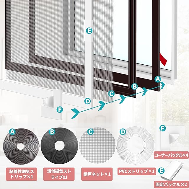 【多様な窓タイプ対応】:引き違い窓、外開き窓、上げ下げ窓などさまざまな窓に適用;網戸 張り替えやあみど網張り替えセットとしても便利;季節ごとの取り外しや再利用が可能。特殊コーナーバックルで片手でラクラク開閉