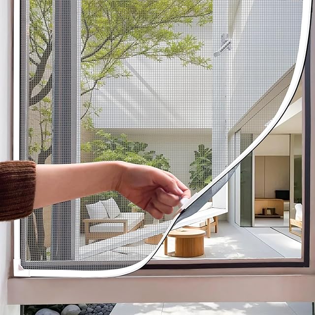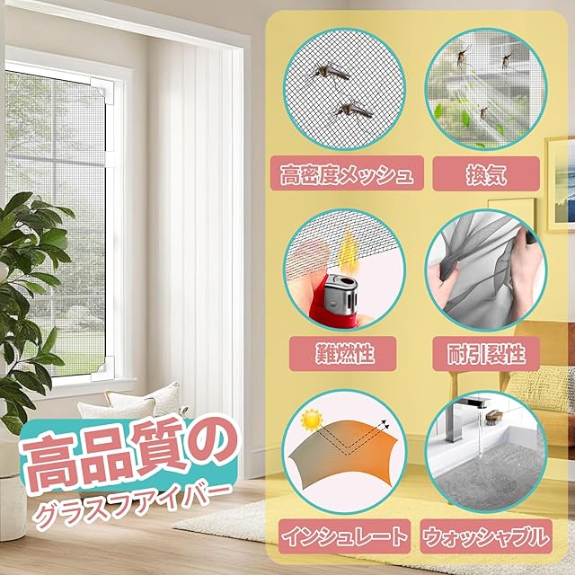 【防虫・防蚊・通気性】:高密度ガラスファイバーメッシュを使用した網戸で、蚊や小さな虫の侵入をしっかり防止;空気の流れを妨げず、快適な室内環境を保ちます;マグネット式で窓枠に密着し、隙間なく設置可能