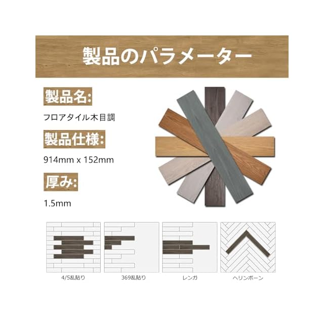 【安全無毒·粘着力が強い】のりで自社特別技術で生産しております、数百回以上のテストリメイクを試験して、剥がしてのり残らなくて傷つけることなく、適切な強度りを選び抜きました。重い家具をフロアタイルに置いても床がずれず、反りの問題もありません。安全で無毒なPVC素材を採用し、異臭がないだけでなく、優れた抗菌能力を持っています。