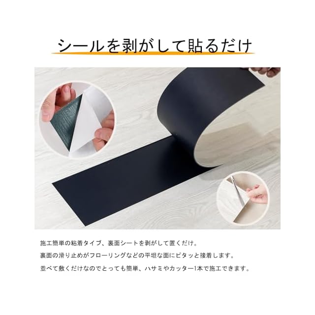 【施工が簡単】自粘式で、裏紙を剥がすだけで簡単に設置できます。ハサミやカッターなどで、好きなサイズにカットしやすく、インテリアやリフォームを素早く簡単に完成できます。専門道具が不要、初心者や女性一人でも簡単に貼り付けることができます。