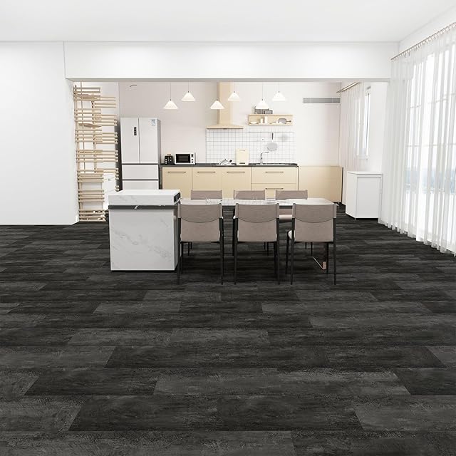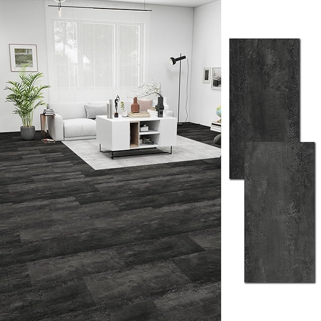 Mulgreat フロアタイル 石目 クッションフロア 大理石 フローリング材 貼るだけ シール式 ビニル床シート 防水 滑り止め 賃貸ok 玄関 洗面所 店舗 トイレ DIY 模様替え 12枚 1畳以上 60.96 x 30.48cm (コンクリート・ブラック) | つむぎ屋