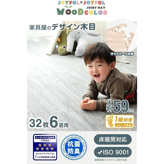 ※商品の仕様上、ジョイント部分(サイドパーツ含む)の木目の柄は合わない場合がございます。※PE素材の特性上、使用するうちに負荷がかかる部分に多少のへたりが生じる場合がございます。そのため、既に使用しているマットに新しいマットを繋げて使用する際、上手く繋がらない場合もございますので、予めご了承ください。※ノンワックスタイプの床材やコーティングの種類により、白色系の床材が黄色に変色することがあります。白色系の床でのご使用は避けてください。※2020年1月29日より59cmタイプのみの販売ページとなりました。2020年1月29日以前にお買い上げいただいた60cmタイプの製品とは接続できません。また、PE樹脂に抗菌・防臭加工を施し、表面の凹凸の形状を変更、裏面を凹凸のないフラットタイプへ変更しました。旧仕様の凹凸タイプとすべりにくさは変わりありません。※2020年7月生産ロットよりホワイトの色味を変更しました。※2021年11月17日にウォールナット(木目)色の販売を終了しました。