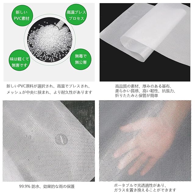 【高温ヒートシール技術】650度の高温ヒートシール技術、ピンホールのない、漏れなし、ゆるみ、亀裂、細かい技量、すぐに水の滑り止めの水滴が滑り落ちる。 縁は二重に補強され、縫製の代わりに熱プレスによって密封されています。 これは、縫製時にこれらの小さな隙間から水が浸透するためです。