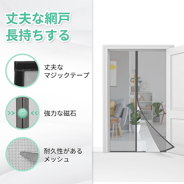 【害虫侵入防止】玄関、勝手口、ベランダの片開きドアに取り付けられますので、蚊・ハエなどの害虫の侵入を防止していてもう他の蚊取り用品やハエ取り用品を買う必要はありません。