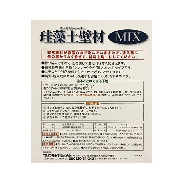 成分:珪藻土、自然素材、アクリル樹脂エマルション、顔料