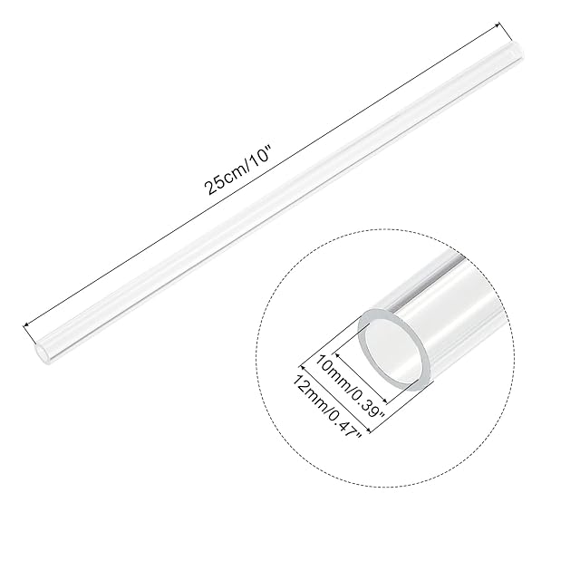 アクリルプラスチックチューブのサイズ:内径10 mm、外径12 mm、全長25 cm