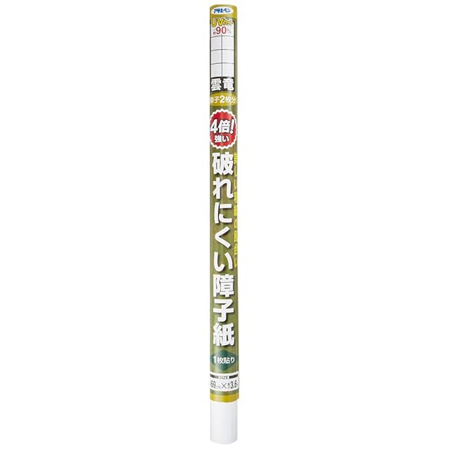 アサヒペン 障子紙 4倍強い 破れにくい障子紙 幅69cm×長さ3.6m 品番5412 雲竜 のり貼り 丈夫 破れにくい U Vカット90%カット 色あせ 変色防止 団地サイズ障子2枚分 日本製 | つむぎ屋