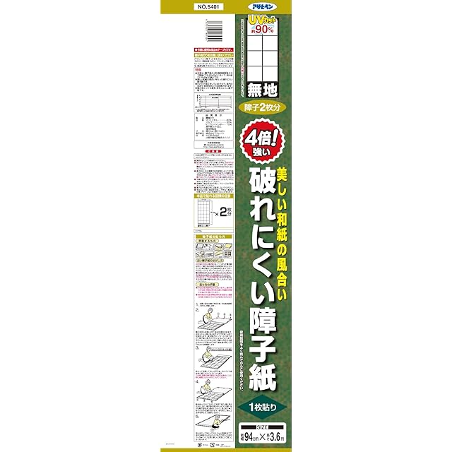 商品名:アサヒペン 障子紙 4倍強い 破れにくい障子紙 幅94cm×長さ3.6m 品番5401 無地 のり貼り 丈夫 破れにくい U Vカット90%カット 色あせ 変色防止 障子2枚分 日本製