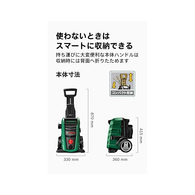 ボッシュ(BOSCH) 高圧洗浄機 1500W 最大許容圧力12MPa パワフル洗浄 コンパクト収納 [8m高圧・3m水道ホース・車輪付き] UA125 クリーナー