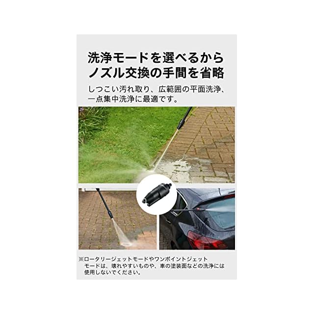 ロータリージェットノズルもついて頑固な汚れも綺麗に落とすことができる。