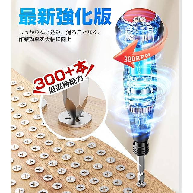 【最新強化版電動ドライバー・手動兼用】この電動ドライバーは全銅モーターを使用しており、パワーが強く、寿命が長くなります。指一本で正回転・逆回転を自由に切り替えられます。最大トルクは電動で3N・m、手動で10N・mです。プロユースとしてだけでなく、家庭での普段使いでも最適。滑り止めボールグリップは使用中に持ちやすく、滑りにくく、締め付け性能が良く、重さはわずか156gで、長時間使用しても疲れにくく、取りやすいです。女性やお年寄りでも簡単にご利用いただけます。