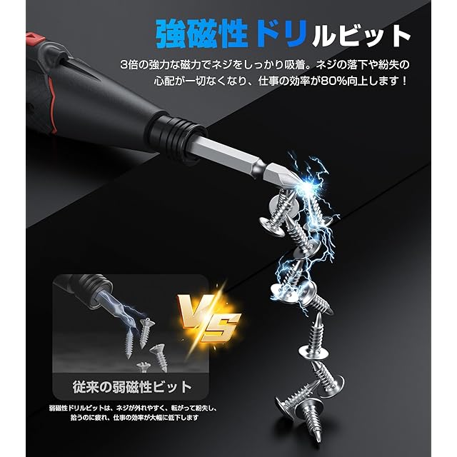 【高品質合金ドリルビット・耐久性】ドライバーのドリルビットは硬度と強度が高い合金で作られており、使用中にドリルビットが折れる心配はありません。チャック内に磁気装置があるので、部品取り付けが簡単かつ確実で、使用中に部品を外れる心配ではありません。交換可能なドリルビットが 14 本付属しており、ご家族のさまざまなニーズに完全に対応します。